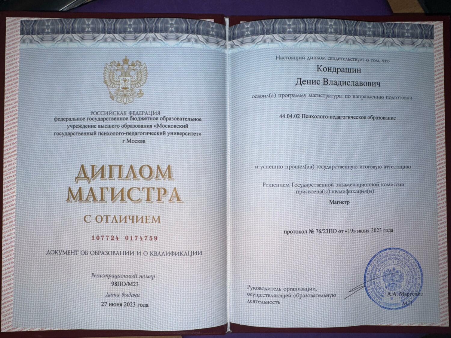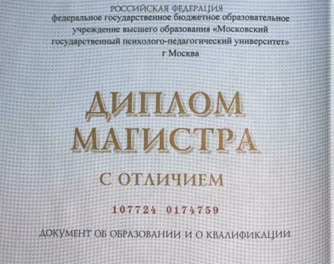 Магистр(с отличием) Московского Государственного Психолого-Педагогического Университета.