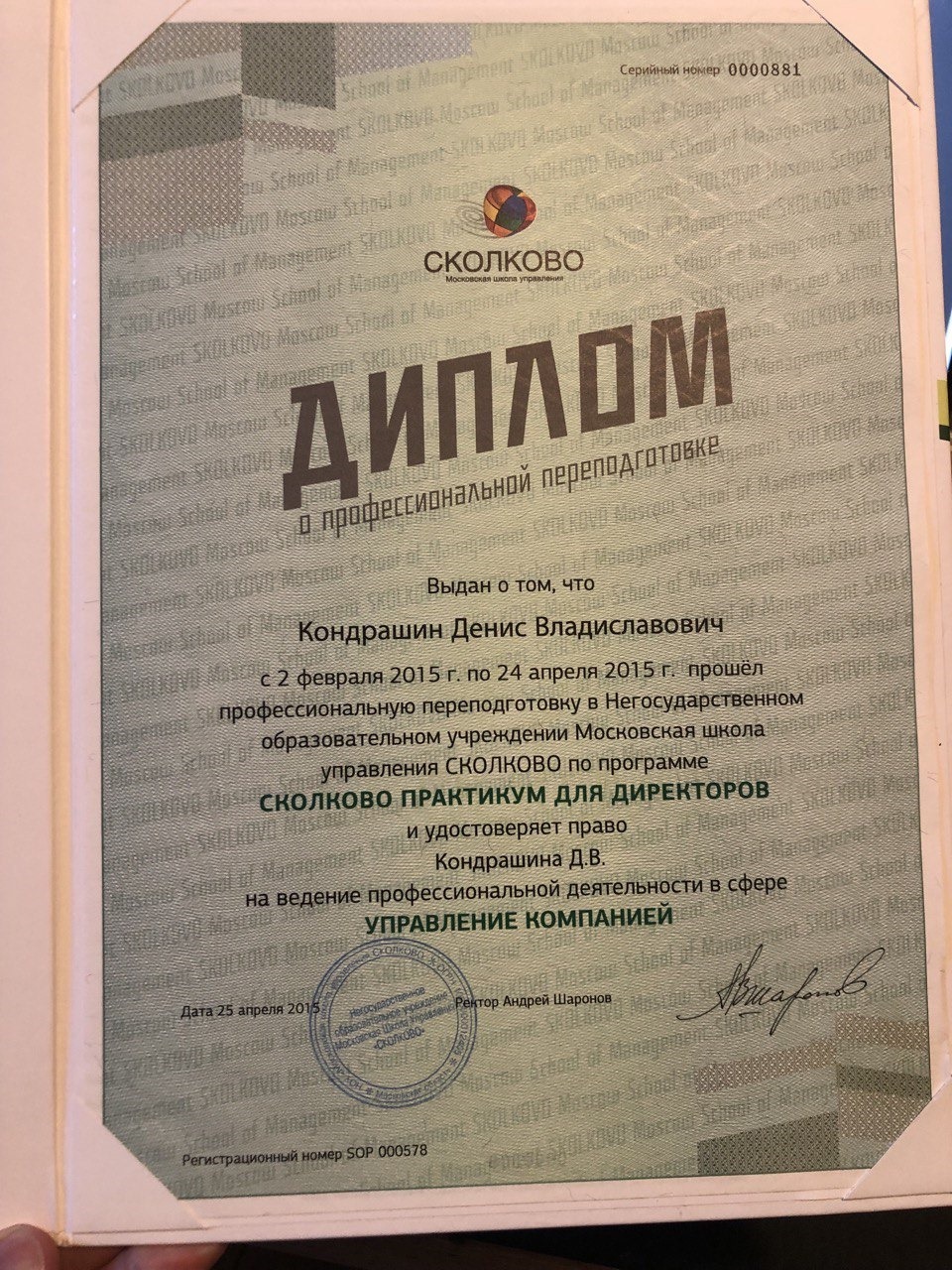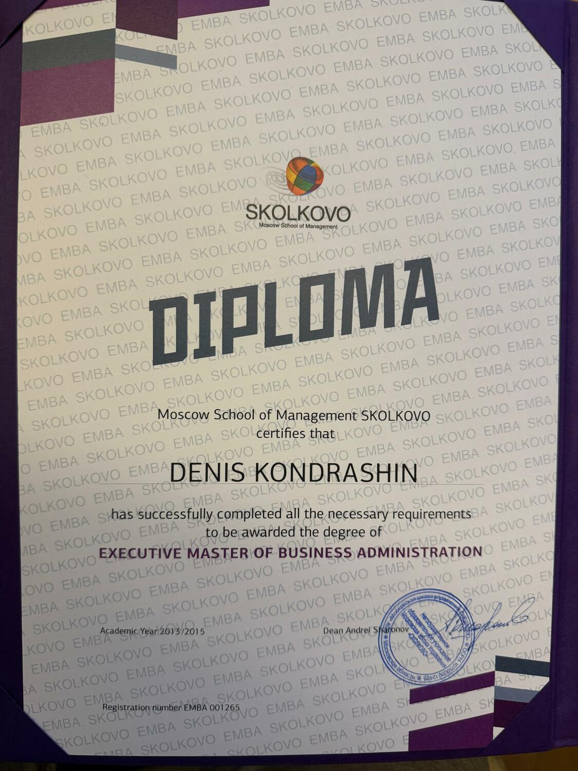 Выпускник Московской Школы Управления "Сколково" по программам EMBA-13, Практикум 4.