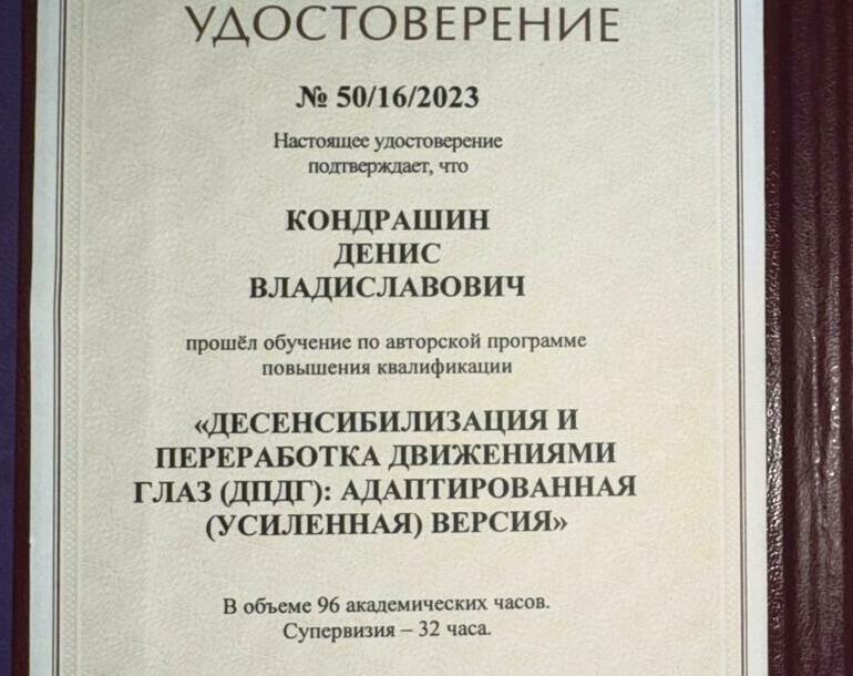 Провожу работу с психологической травмой методом ДПДГ (EMDR). Диплом института "Иматон".