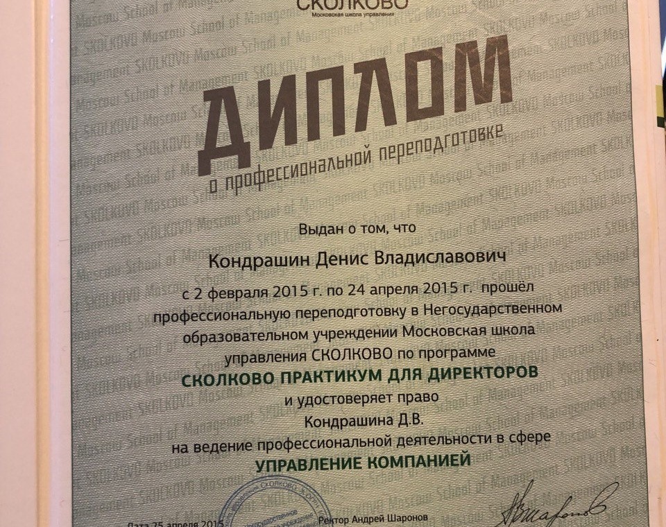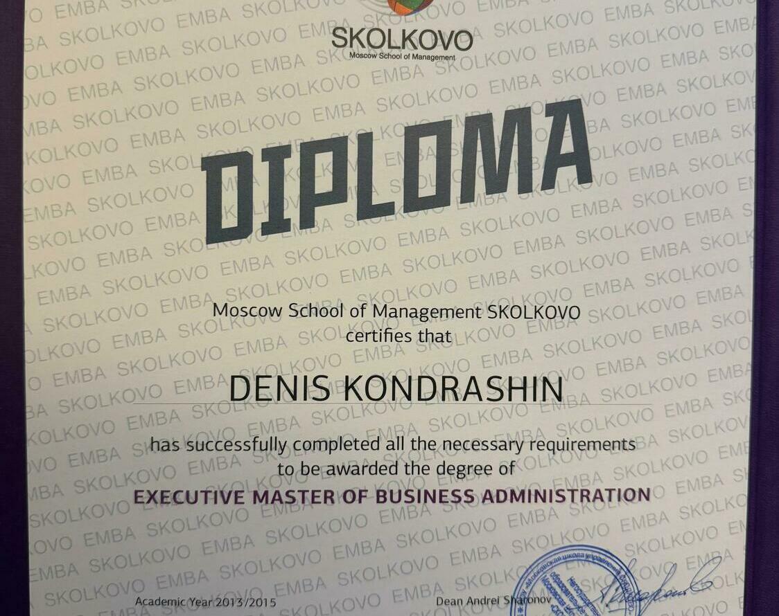 Выпускник Московской Школы Управления "Сколково" по программам EMBA-13, Практикум 4.