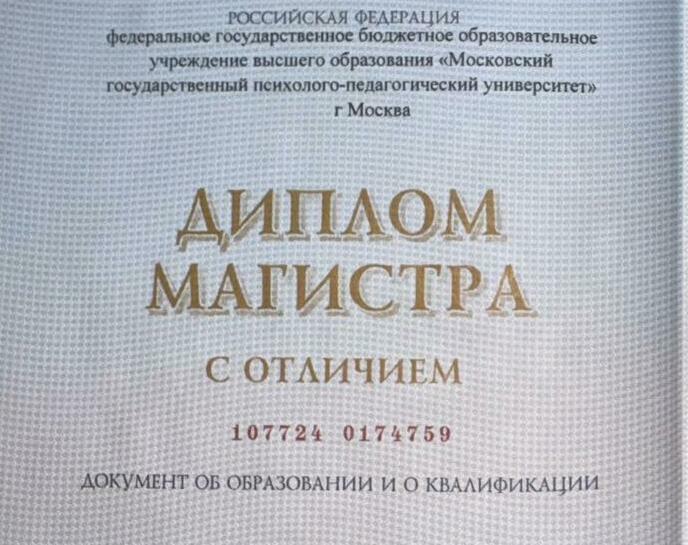 Магистр(с отличием) Московского Государственного Психолого-Педагогического Университета.